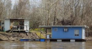 houseboats to river right and another little blue one to