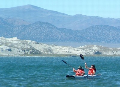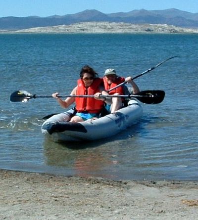 What We SawWe kayaked approximately a one mile paddling along the coast. The Lake is extremely salty due to lack of any outlet. The only known organism that can exist in the Lake are the brine shrimp. The Lake is fed constantly by mountain streams, but the minerals, predominately calcium carbonate, deposit in the Lake. The scenery is dominated by beautiful mineral deposits, known as TUFAS, that are found everywhere along the Lake. Over time as the Lake level has risen and fallen these TUFAs have formed. The rising and falling has had its origins in both climate and manmade causes. Until recently the Lake level was falling, exposing the TUFAs, due to water from the stream feeding it being used by Los Angeles. Recent congressional action has protected the Lake and once again the level is rising. This dynamic change makes for a beautiful excursion. Because the coast is very sandy it is easy to put ashore and visit these TUFAs. |